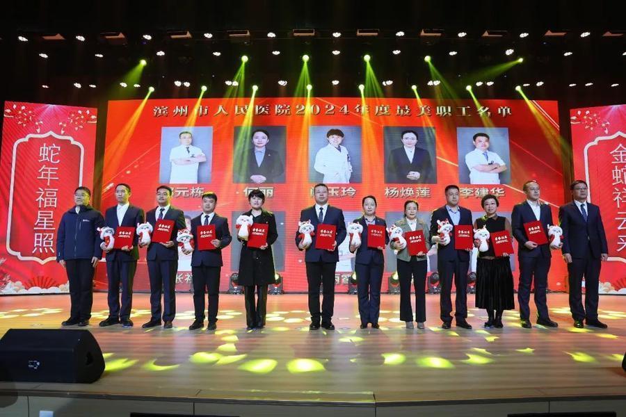 晚会还举行了2024年度最美职工颁奖,表彰了在过去一年中表现突出的优秀职工。市卫健委党组书记、主任,市中医药管理局局长董希国,市人民医院党委书记肖春祥为医院“最美职工”颁奖。